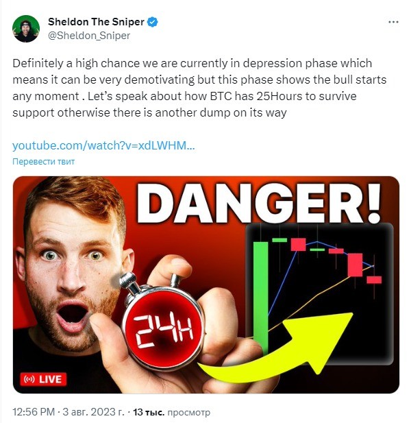 Криптовалютный аналитик и ведущий Crypto Banter, известный как Шелдон Снайпер, считает, что рынок биткоина находится в фазе депрессии. Несмотря на это, Шелдон считает, что бычий рост может начаться в любой момент, но для этого необходимы усилия быков.