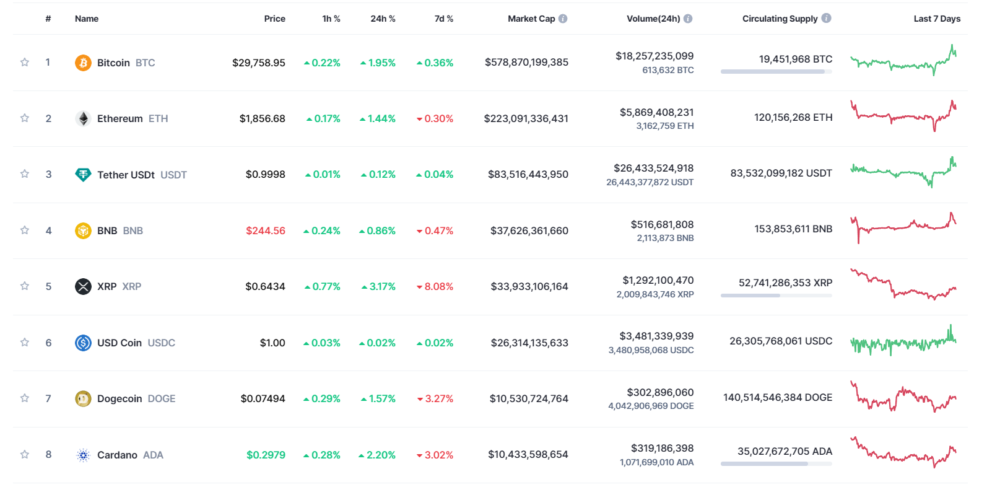 Среди других криптовалют самое большое снижение показал Dogecoin, потеряв 1,54% за последние 24 часа. Наибольший рост показал XRP, на 1,05% до 0,6203 доллара США.