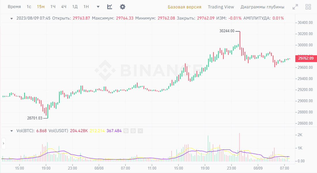 Чего ожидать от цены Биткоина в ближайшее время? Вероятнее всего, особых изменений не произойдет. Стоимость Биткоина так и будет находиться в узком коридоре от 28 900 до 29 700 долларов, как минимум несколько дней.