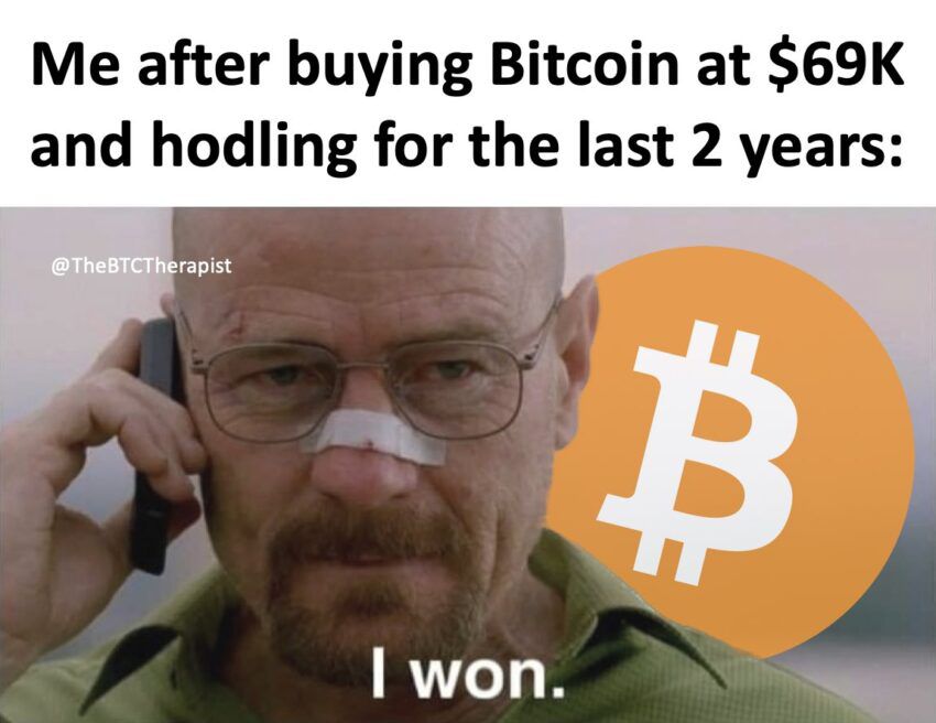 «Я, после того, как купил биткоин по $69 тыс. и удерживал криптовалюту на счету 2 года: “Я победил!“».