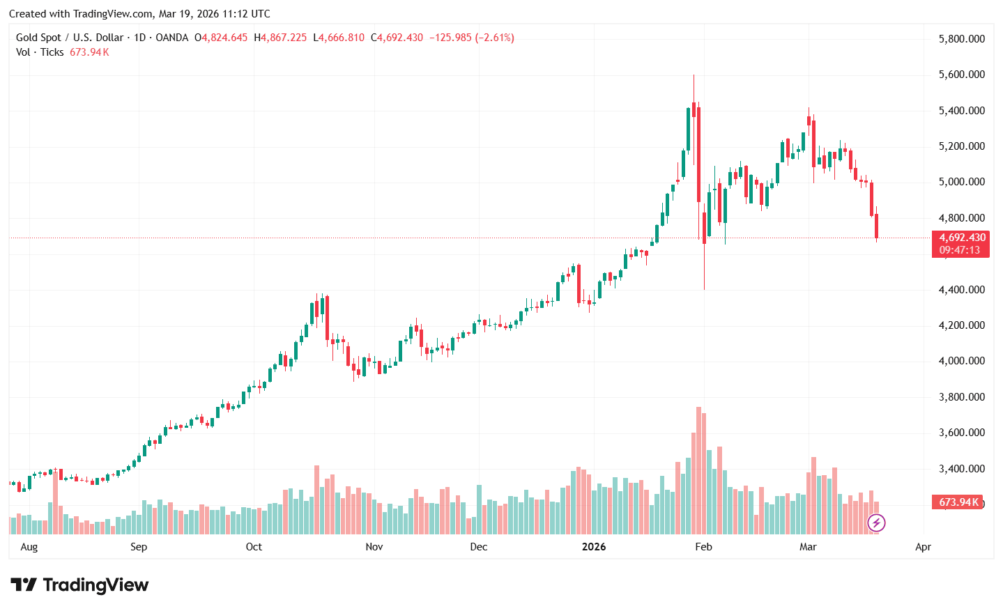 Суточный график цены золота. Источник: TradingView.