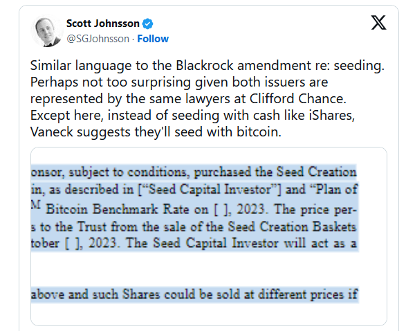 В случае с VanEck начальный инвестор должен либо уже владеть BTC, либо купить актив для последующего вложения. Однако в заявке не указано, какие компании участвуют в раунде, уточнил адвокат.